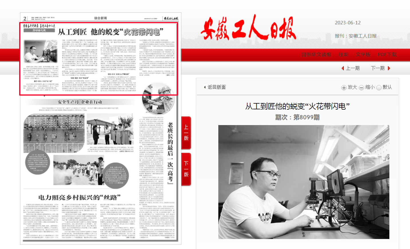 《安徽工人日报》2版好博体育矿邹思伟从工到匞 他的蜕变“火花带闪电“