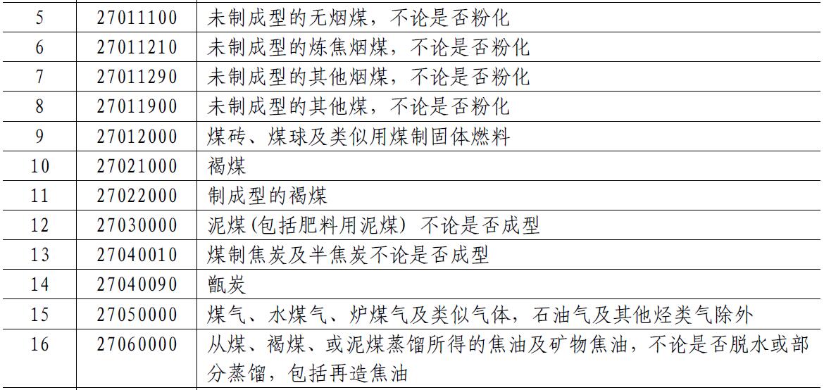 (税委会公告〔2018〕7号)。根据《国务院关税税则委员会关于对原产于美国500亿美元进口商品加征关税的公告》(税委会公告〔2018〕5号),对美加征关税商品清单二的商品,自2018年8月23日12时01分起实施加征25%的关税。根据清单,涉及十余类煤炭及相关产品。清单如下: